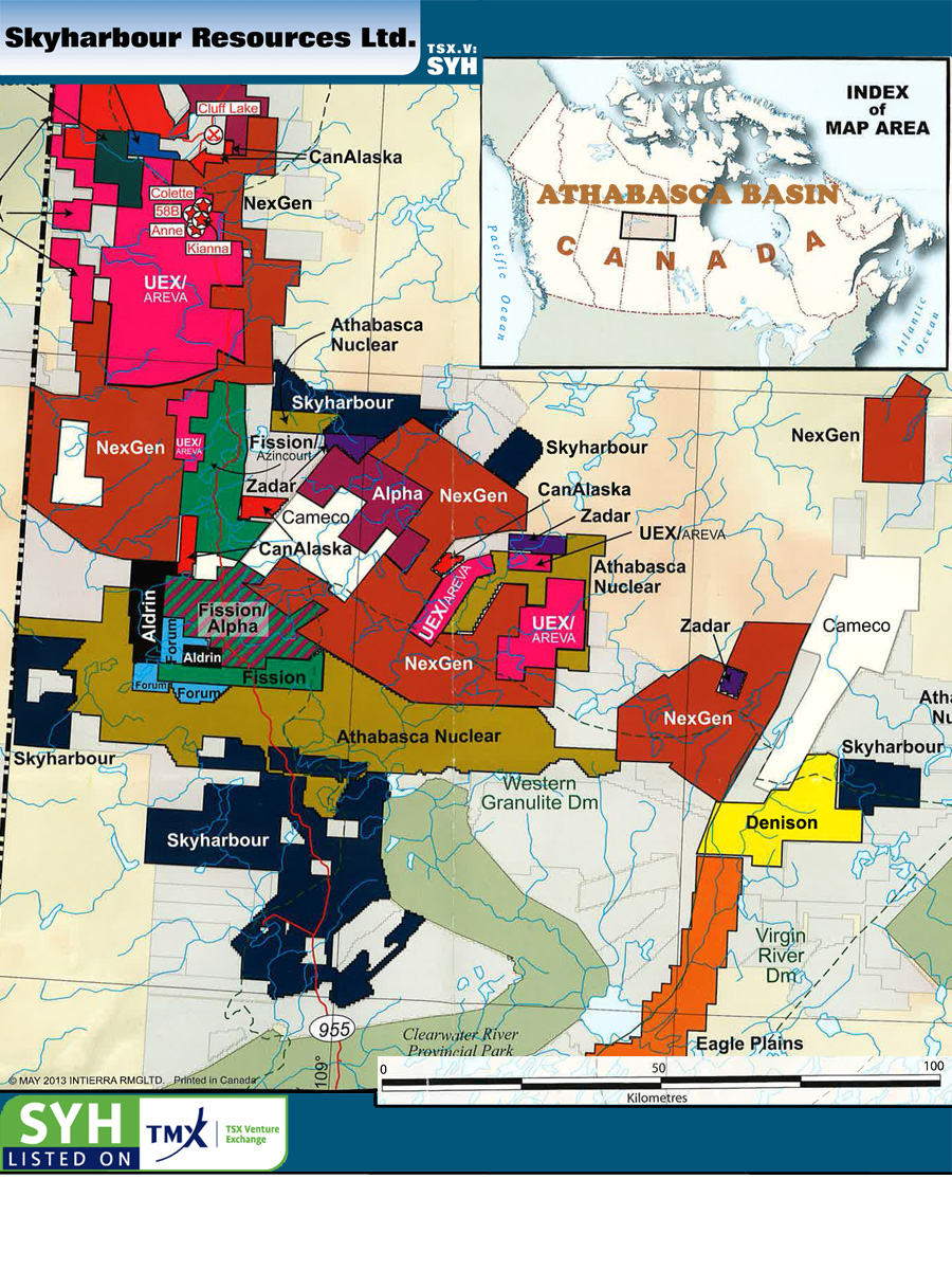 Athabasca Basin i Kanada där det höggradigaste uranet och några av världens största urangruvor finns. Det kryllar av juniorer här som har mutat in områden och som vanligt gäller att risken är skyhög och att bara några få av dessa kommer att lyckas.
